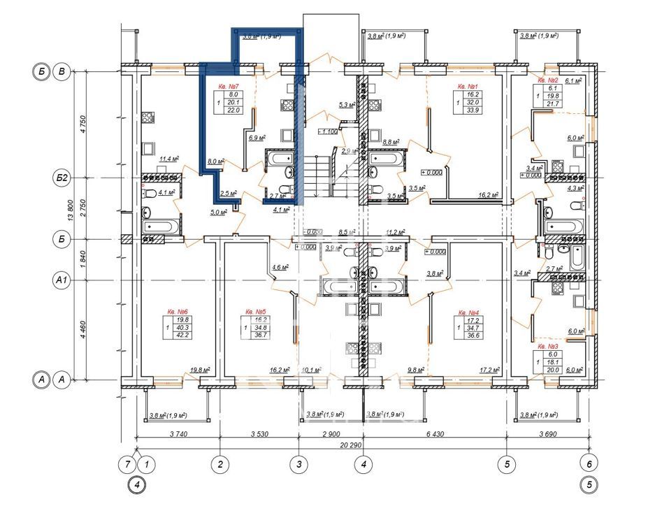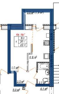 22 / 8 / 6,9 м²