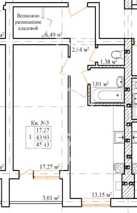 Однокомнатная квартира 42,9 м2, мкр-н "Венеция", дом 9