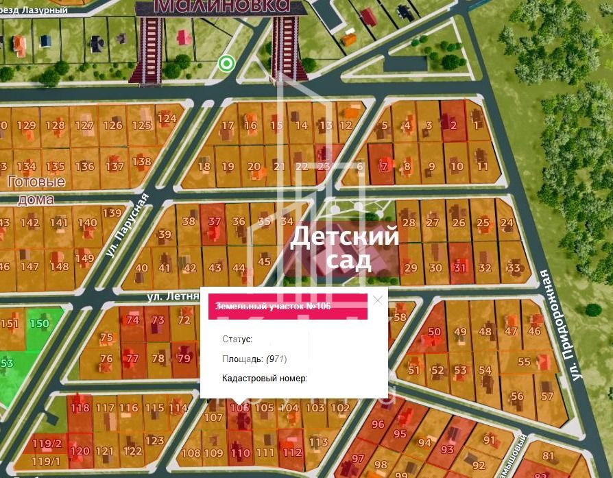 Земельный участок Малиновка № 106, 9,71 сотки