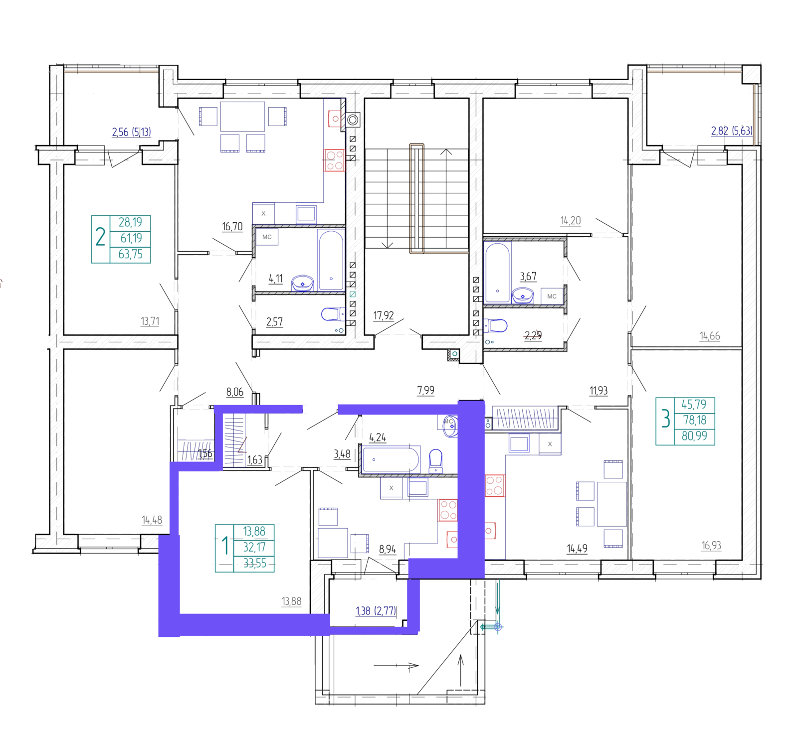 Продается 1-комн. квартира № 24 пл. 33,55 м²