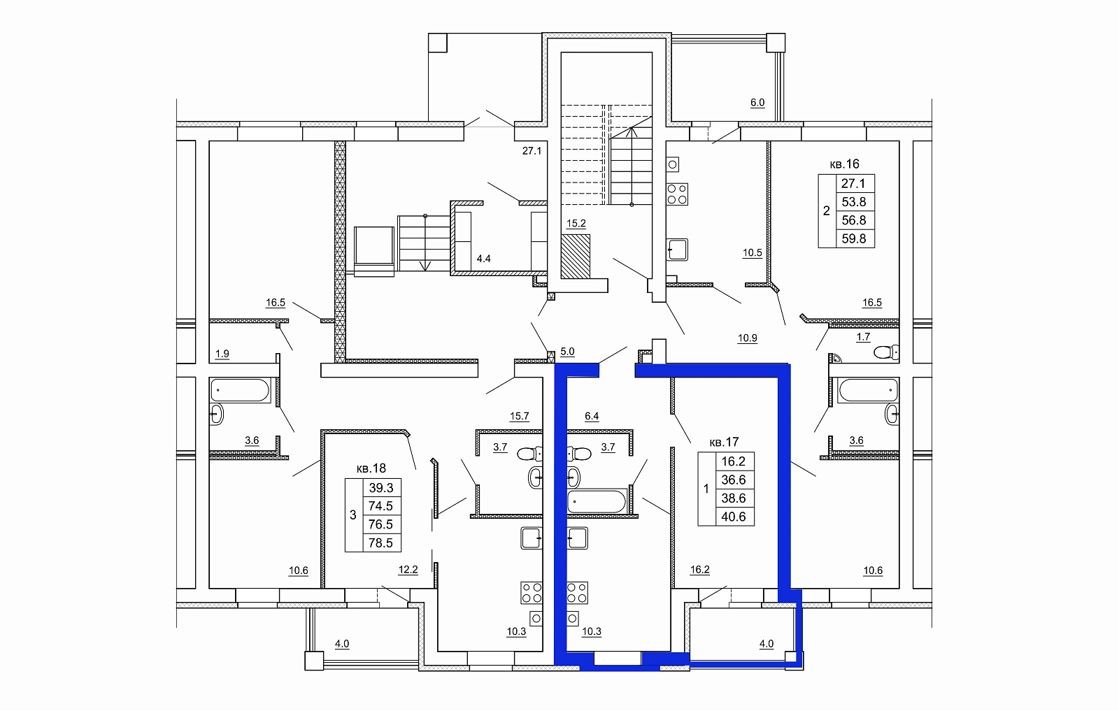 Продается 1-комн. квартира № 17 пл. 40,6 м²