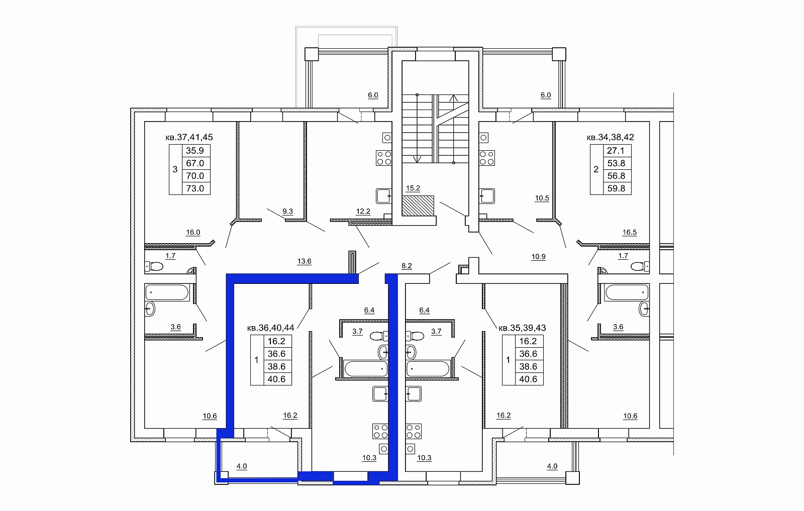 40,6 / 16,2 / 10,3 м²