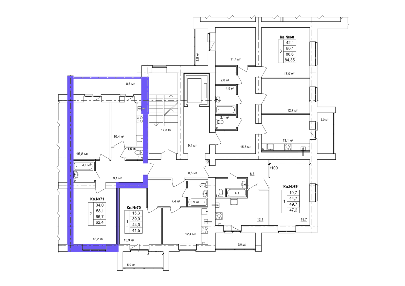 Продается 2-комн. квартира № 71 пл. 66,7 м²