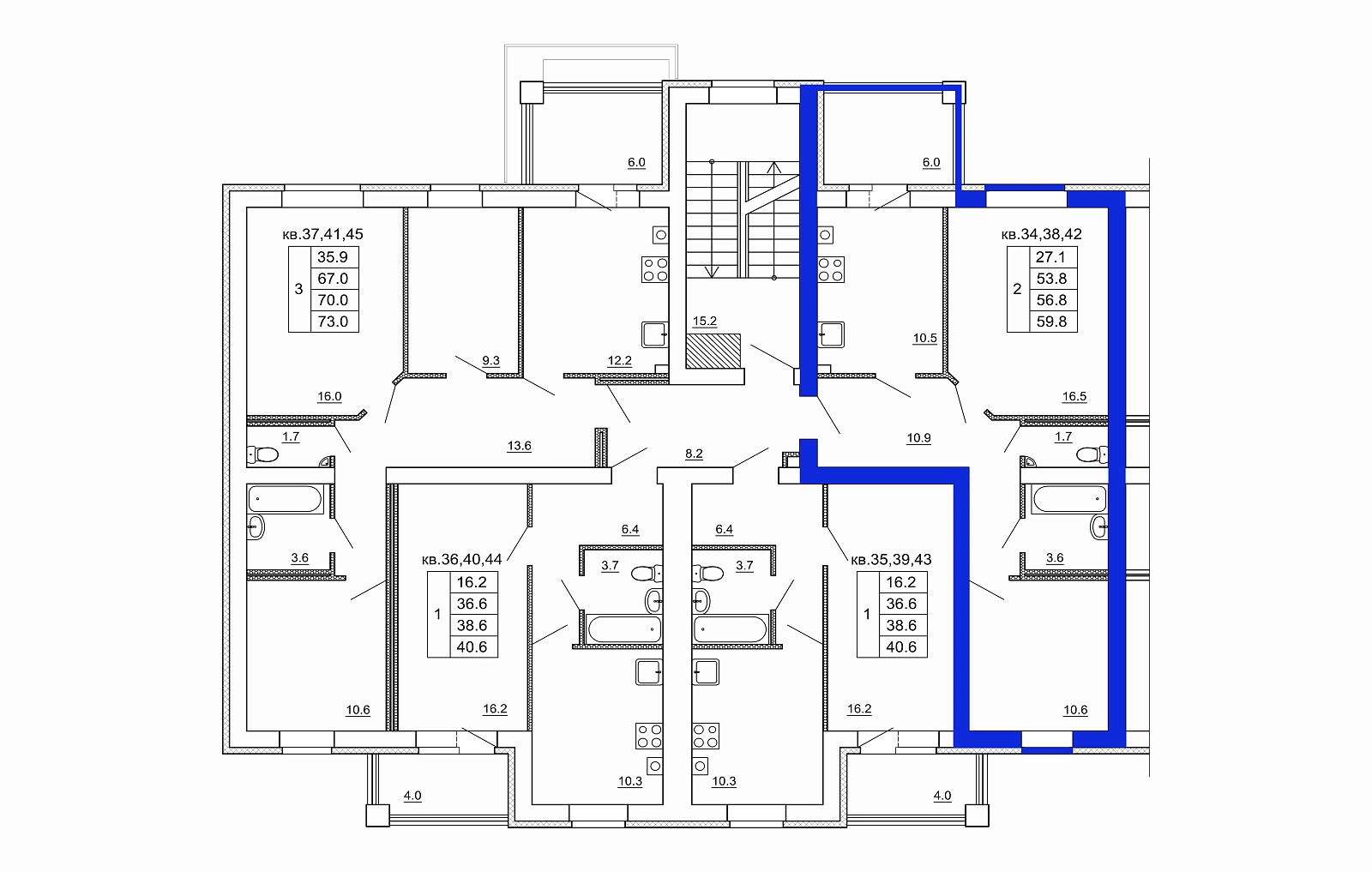 2-комн. квартира № 38 пл. 59,8 м²
