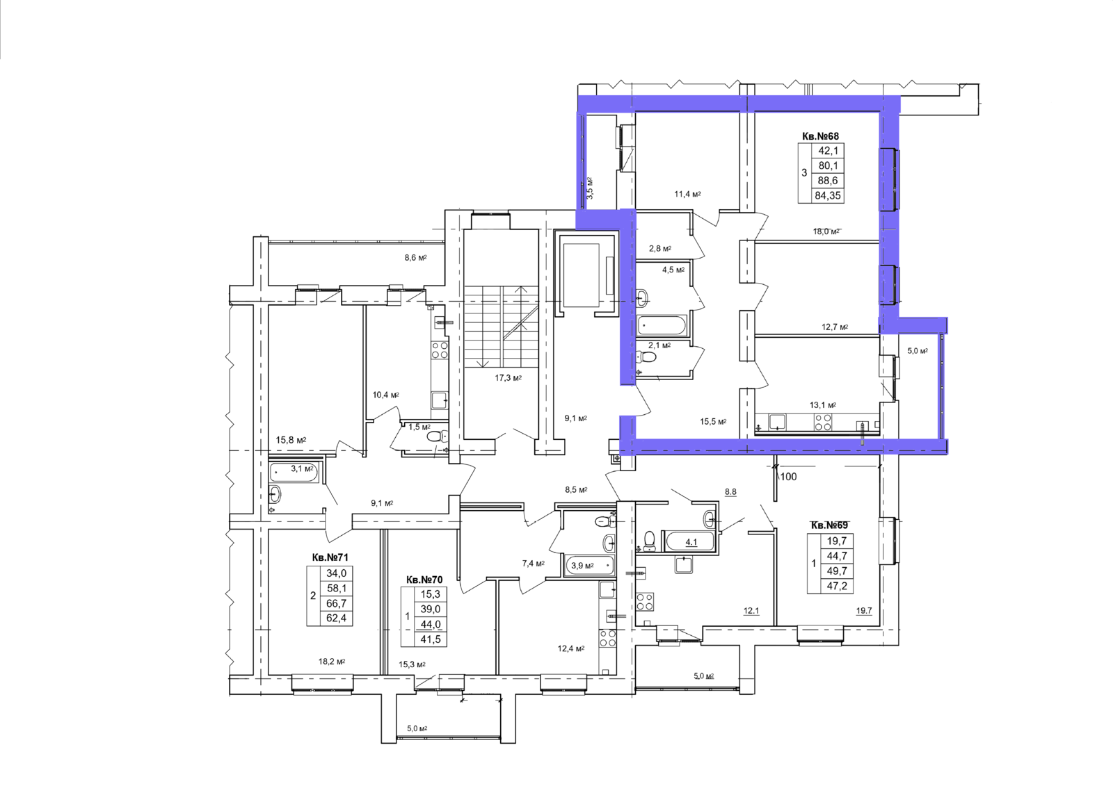 Продается 3-комн. квартира № 68 пл. 88,6 м²