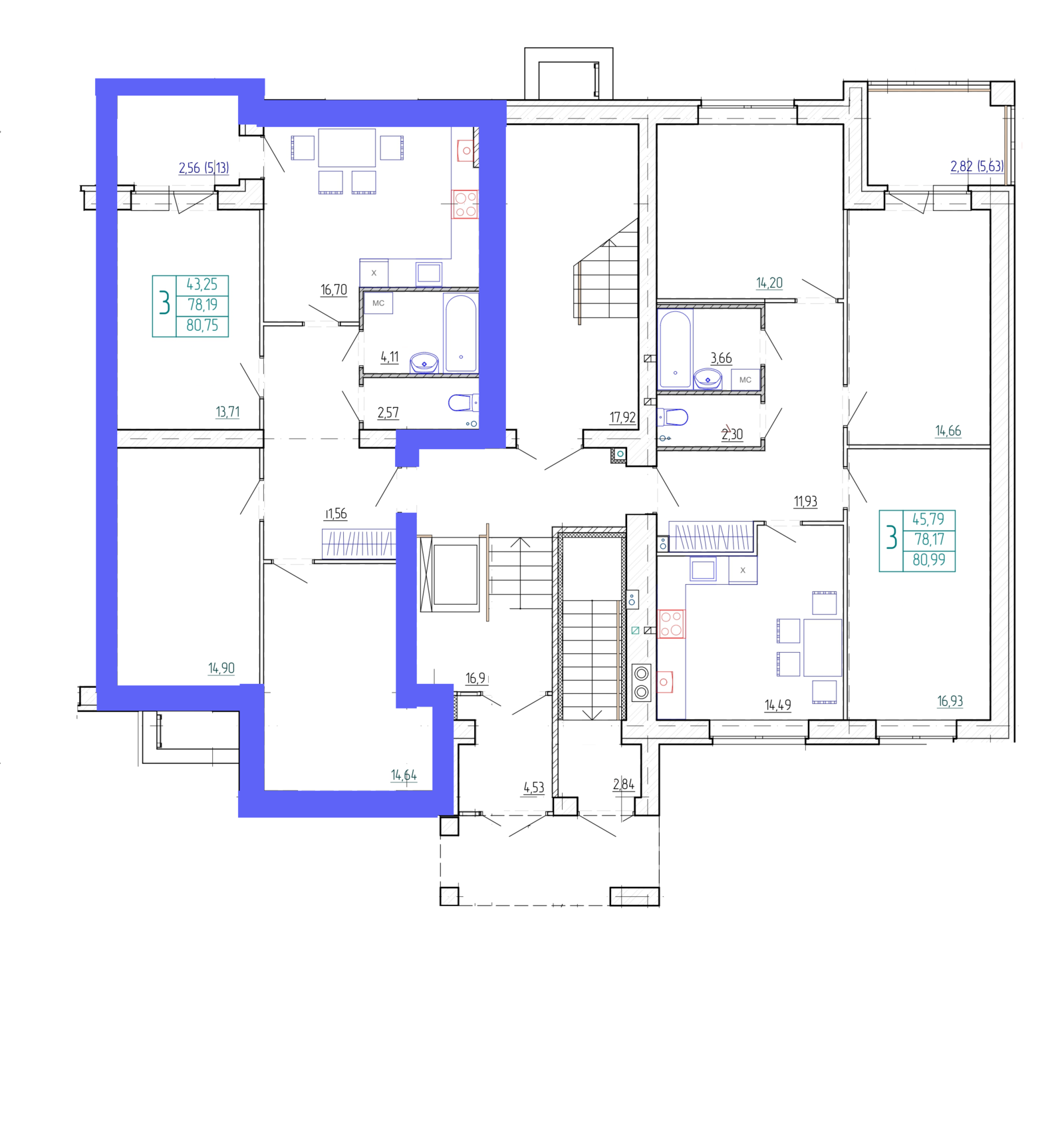 Продается 3-комн. квартира № 18 пл. 80,75 м²