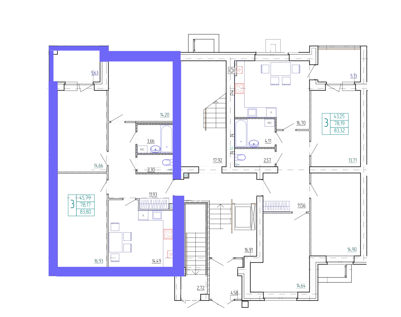 Продается 3-комн. квартира № 1 пл. 83,8 м²