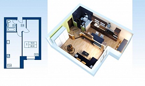 2х уровн. 1-комн. квартира № 44 пл. 34,1 м²