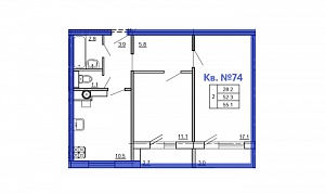 2-комн. квартира № 74 пл. 55,1 м²