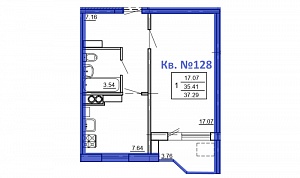 1-комн. квартира № 128 пл. 37,29 м²