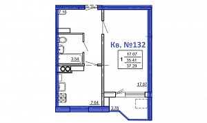 1-комн. квартира № 132 пл. 37,29 м²