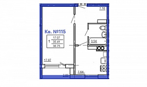 Продается 1-комн. квартира № 14 пл. 36,75 м²