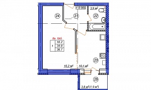 1-комн. квартира № 16 пл. 35 м²