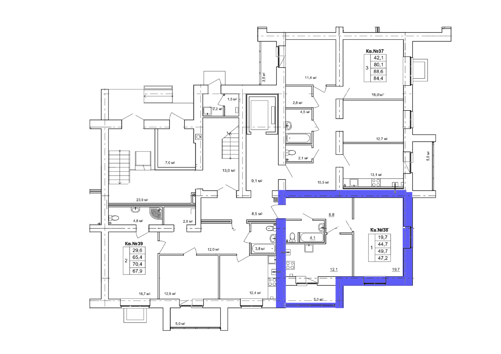 1-комн. квартира № 38 пл. 49,7 м²