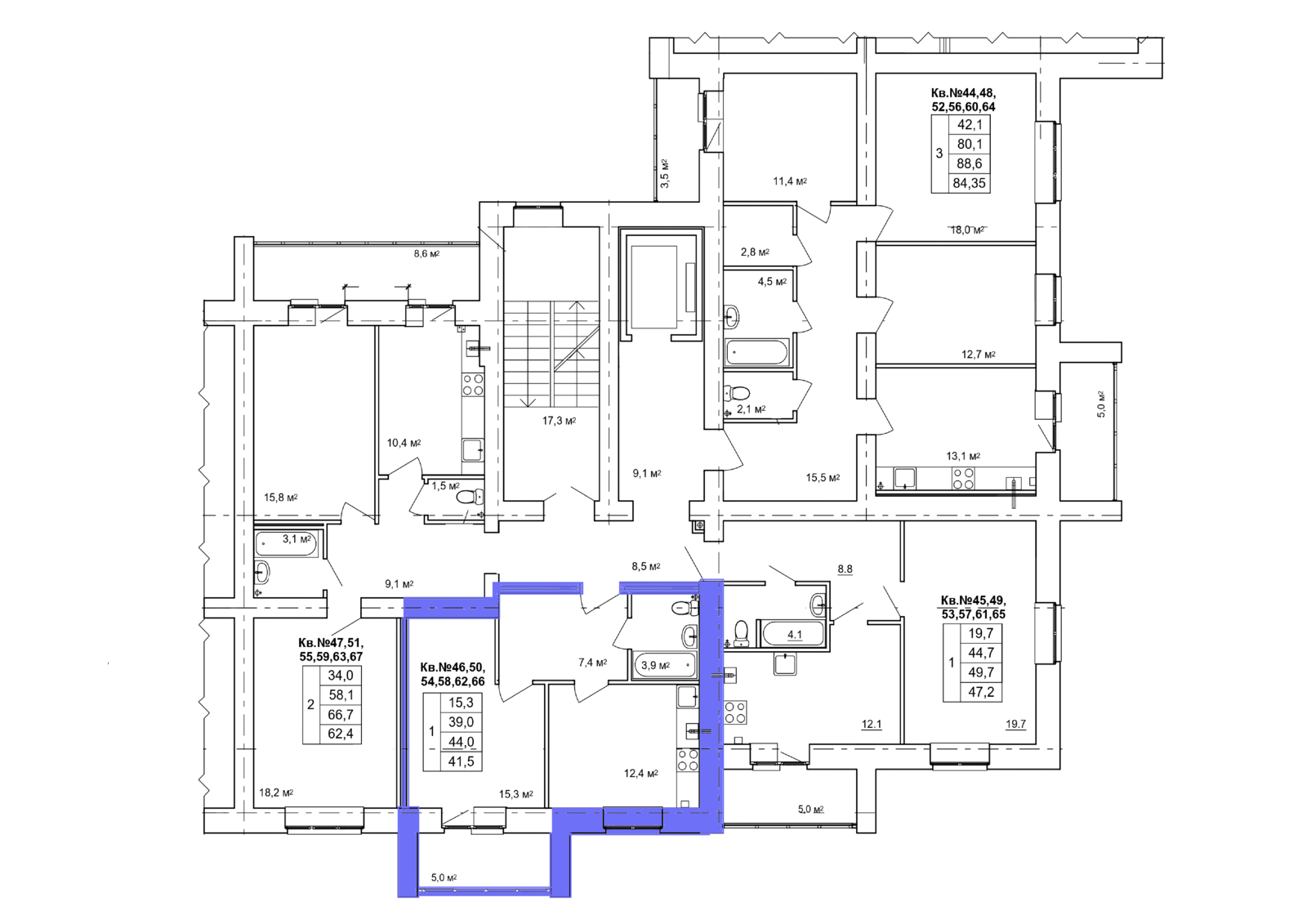 Продается 1-комн. квартира № 66 пл. 44 м²