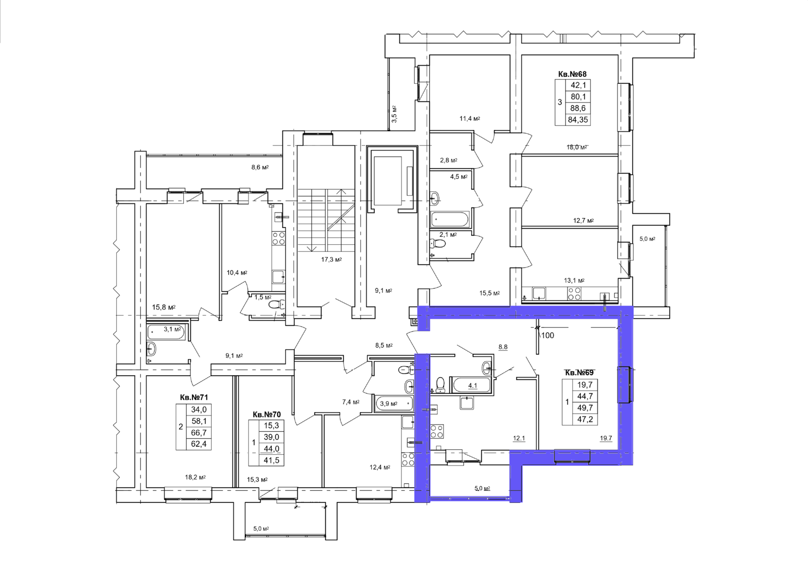 1-комн. квартира № 69 пл. 49,7 м²