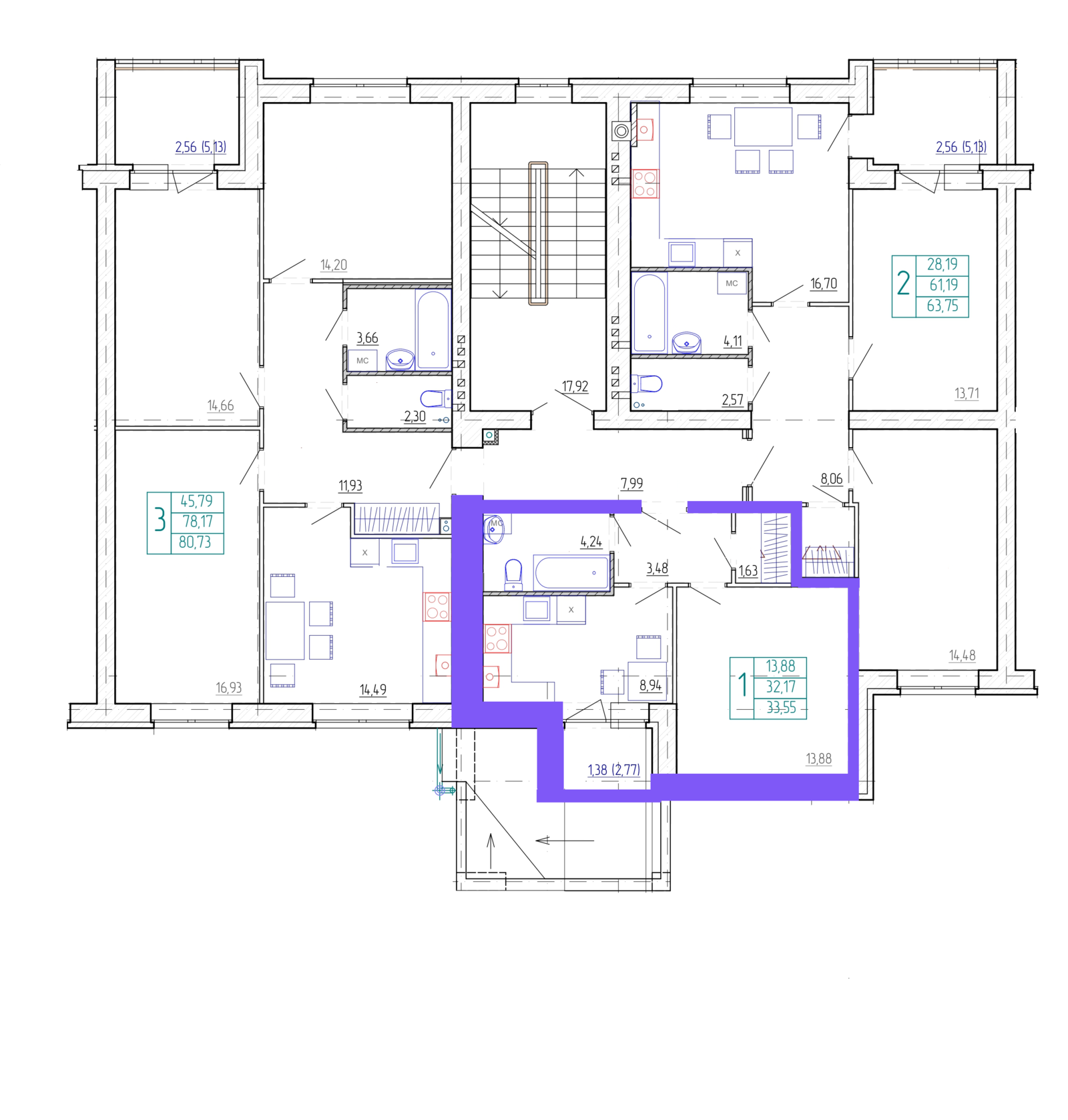 Продается 1-комн. квартира № 16 пл. 33,55 м²