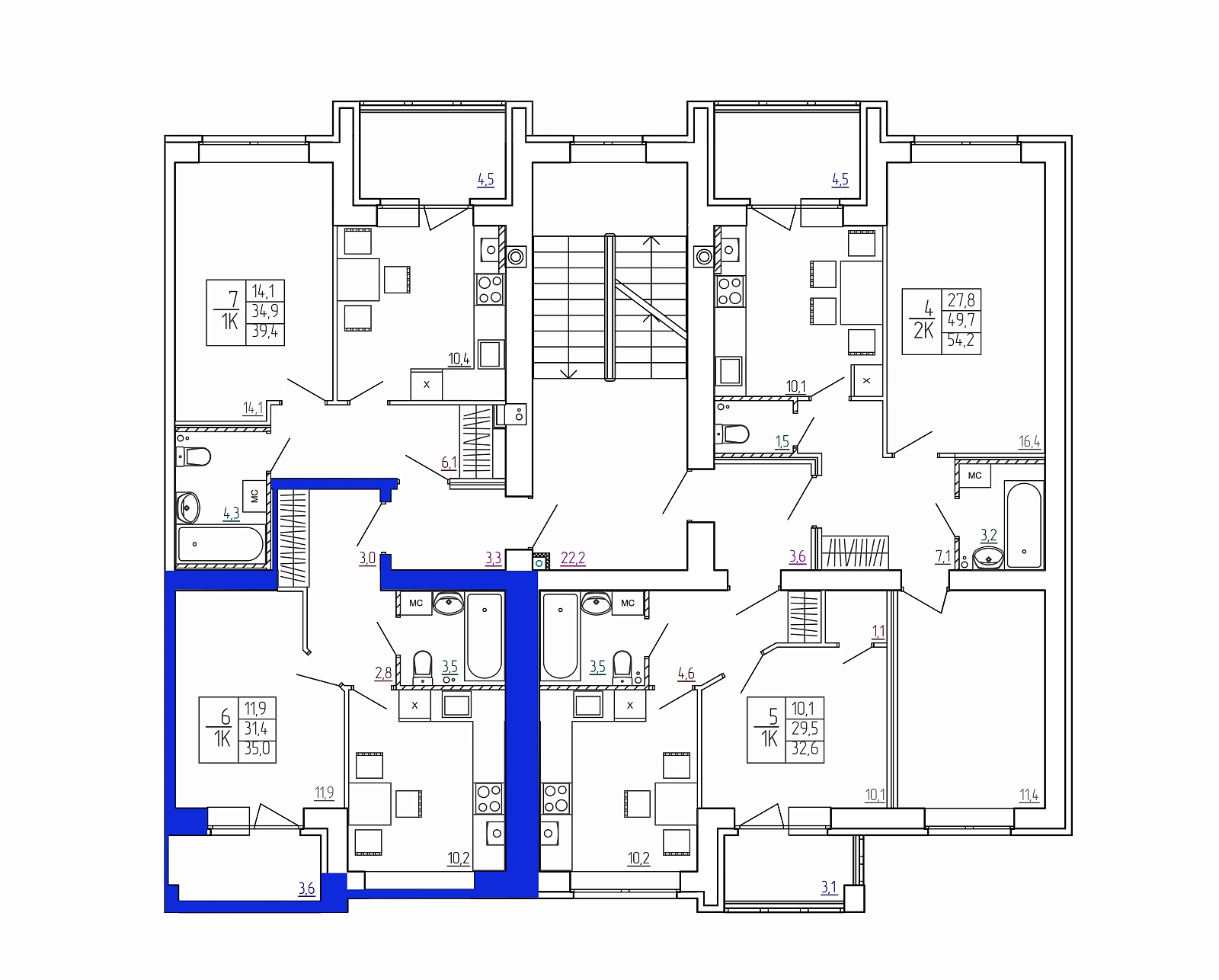 2-комн. квартира № 8 пл. 54,2 м²