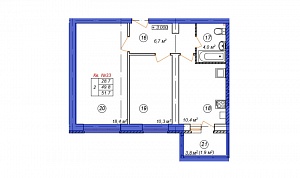 2-комн. квартира № 33 пл. 51,7 м²