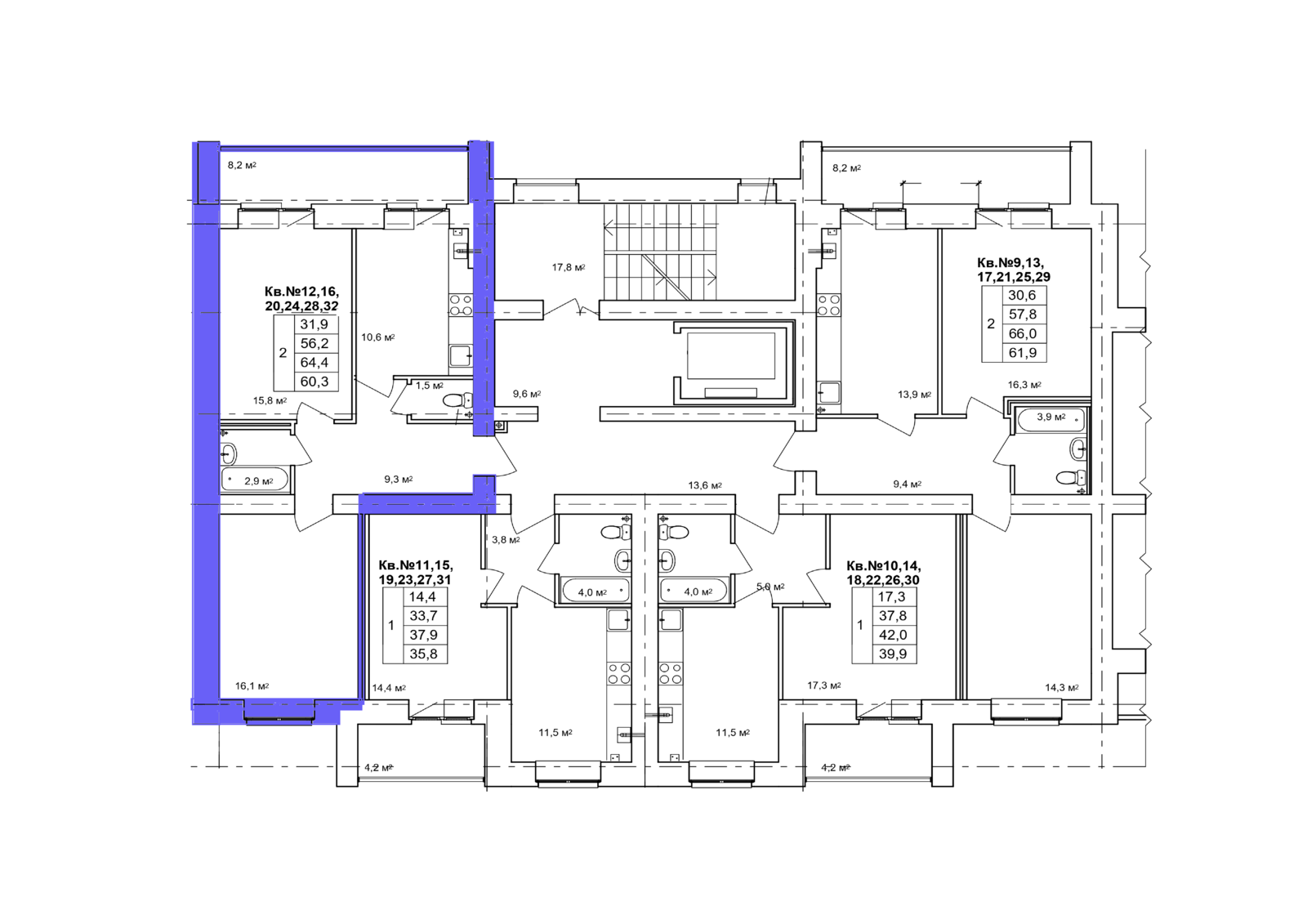 2-комн. квартира № 33 пл. 66 м²