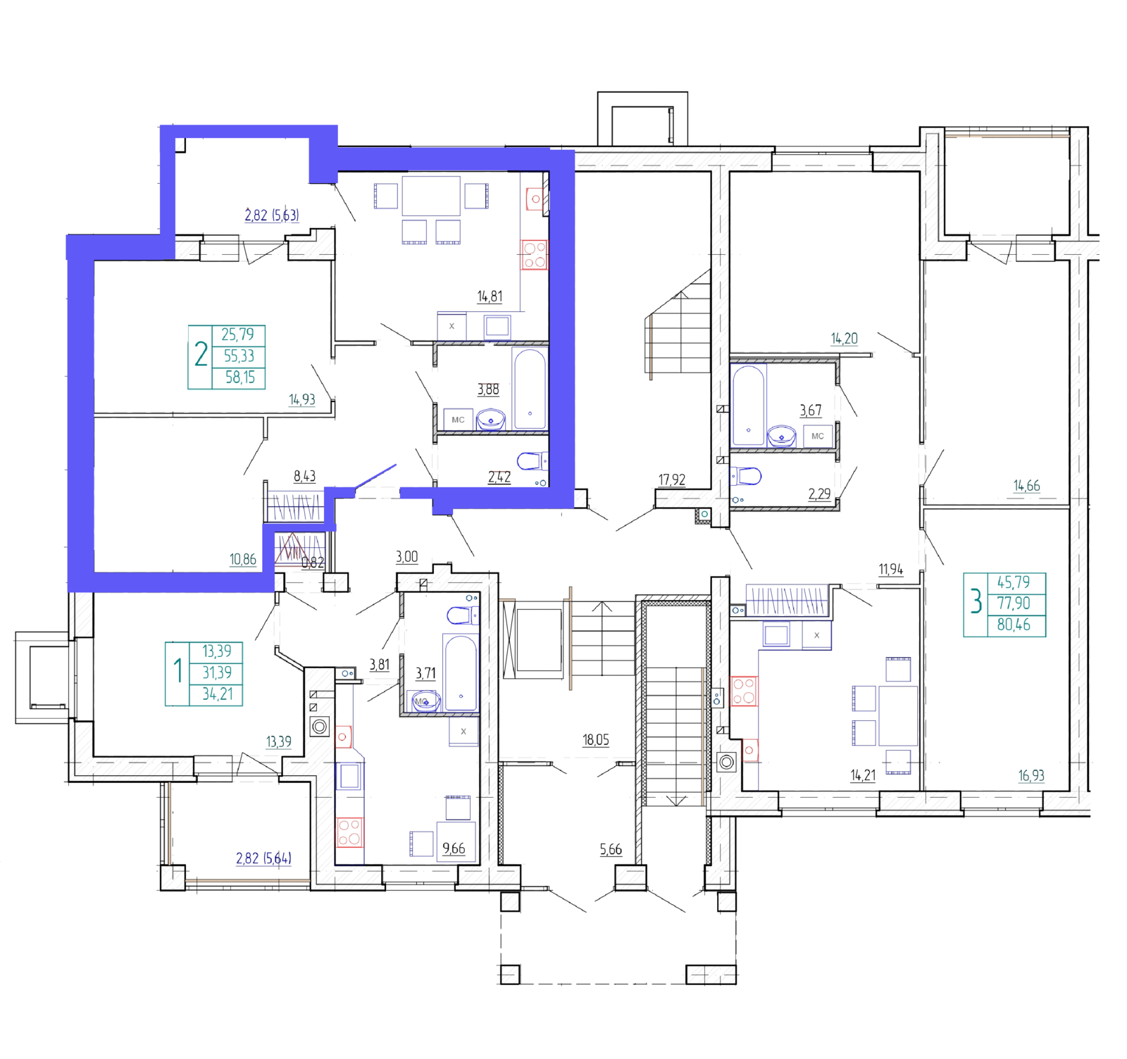 Продается 2-комн. квартира № 2 пл. 58,15 м²
