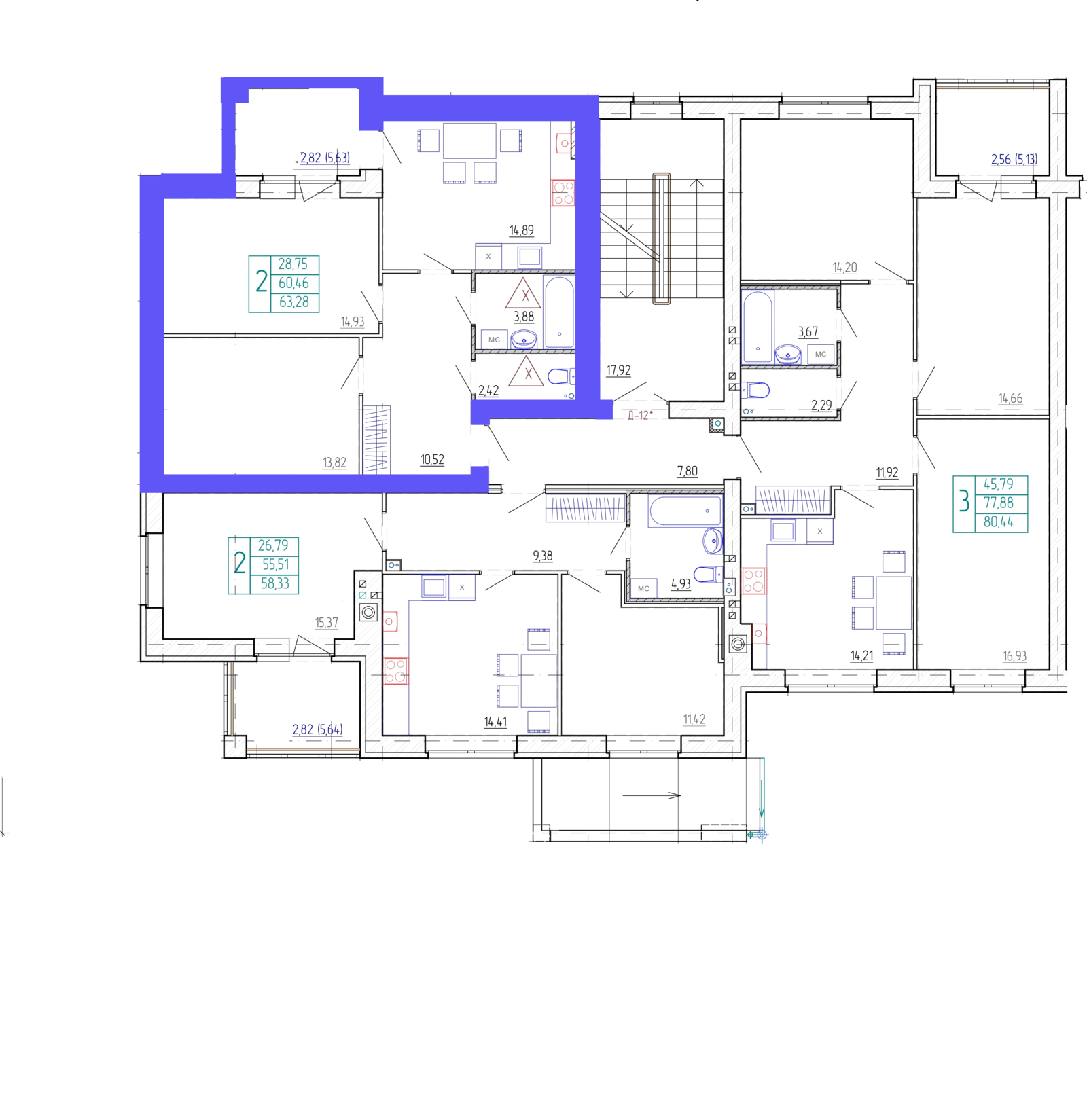 Продается 2-комн. квартира № 6 пл. 63,28 м²