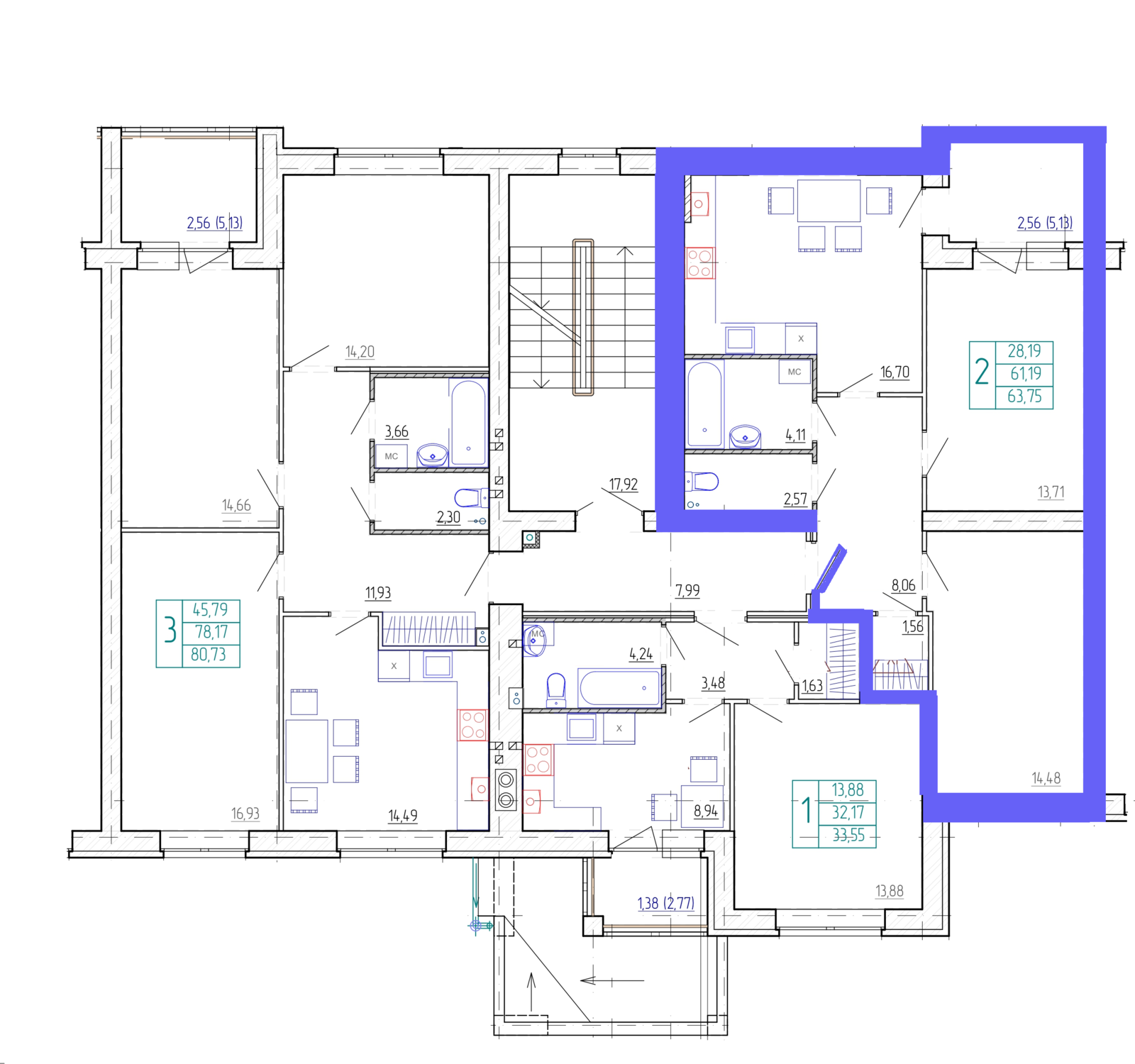 Продается 2-комн. квартира № 12 пл. 63,75 м²