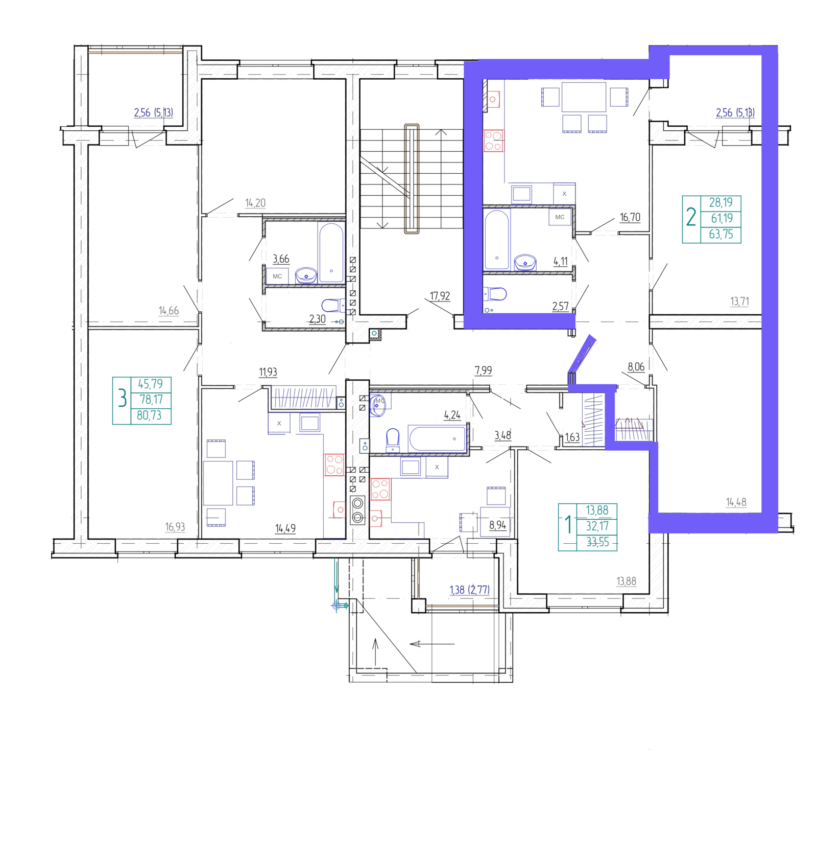 Продается 2-комн. квартира № 15 пл. 63,75 м²