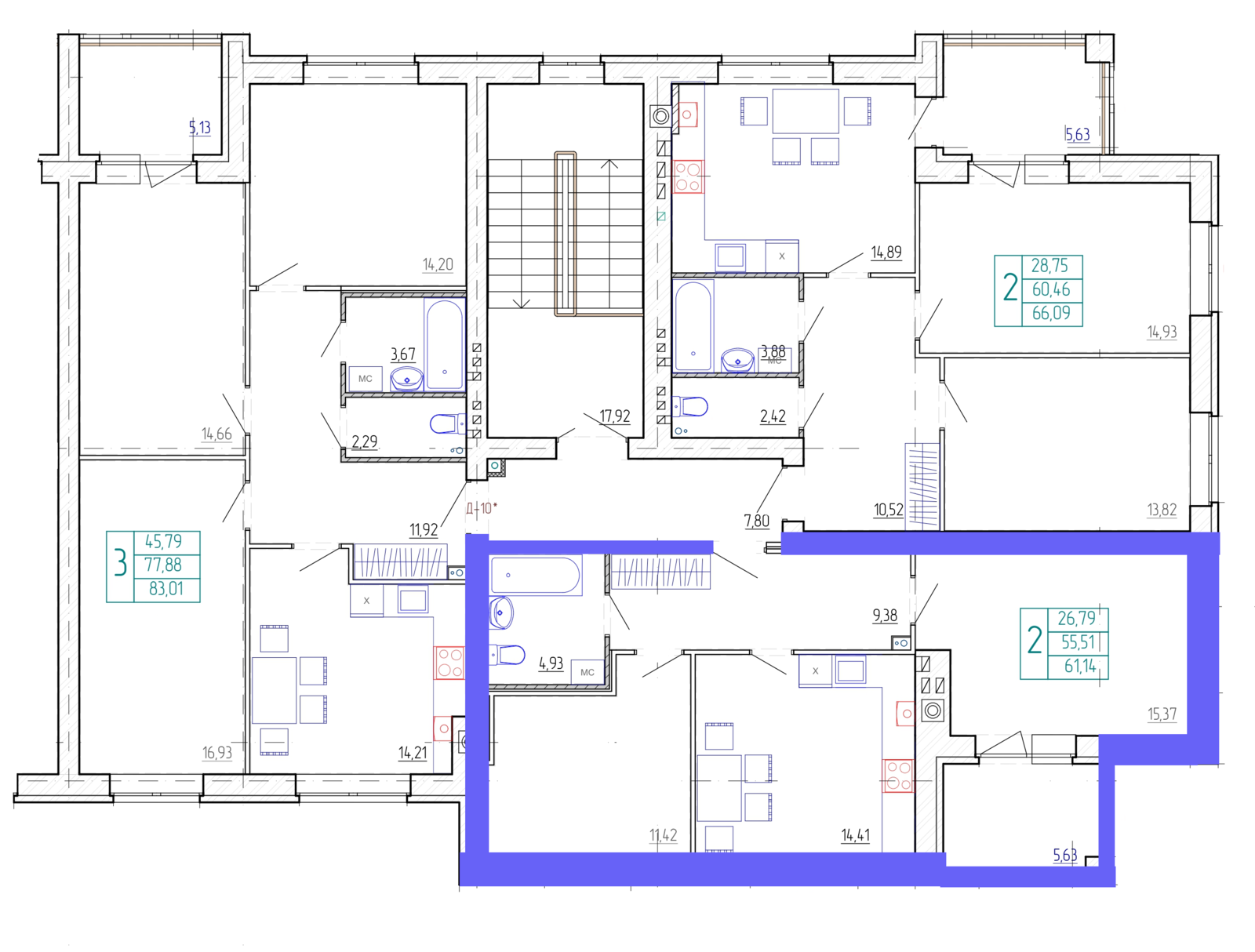 Продается 2-комн. квартира № 24 пл. 61,14 м²