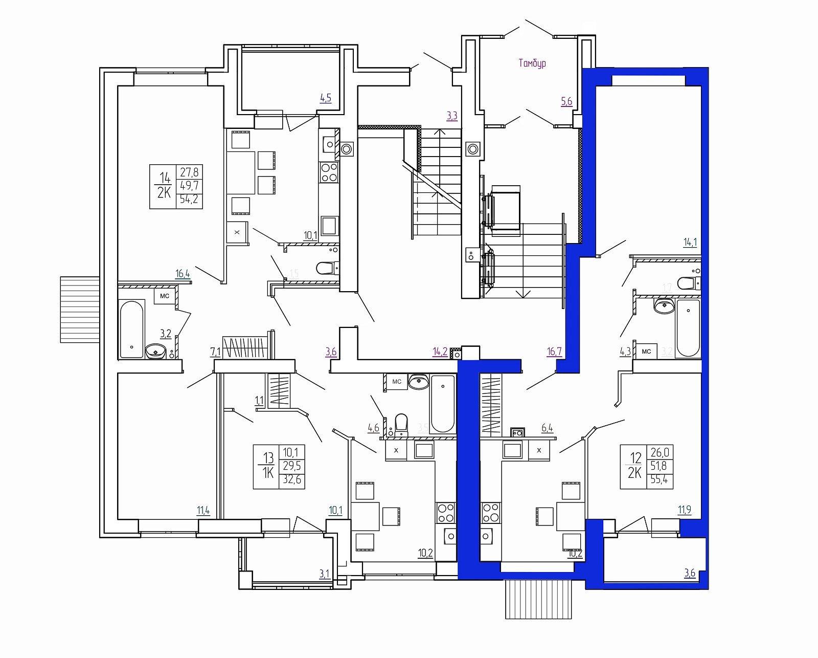 Продается 2-комн. квартира № 12 пл. 55,4 м²