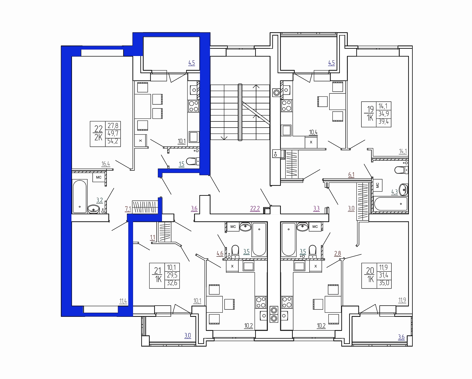 Продается 2-комн. квартира № 22 пл. 54,2 м²