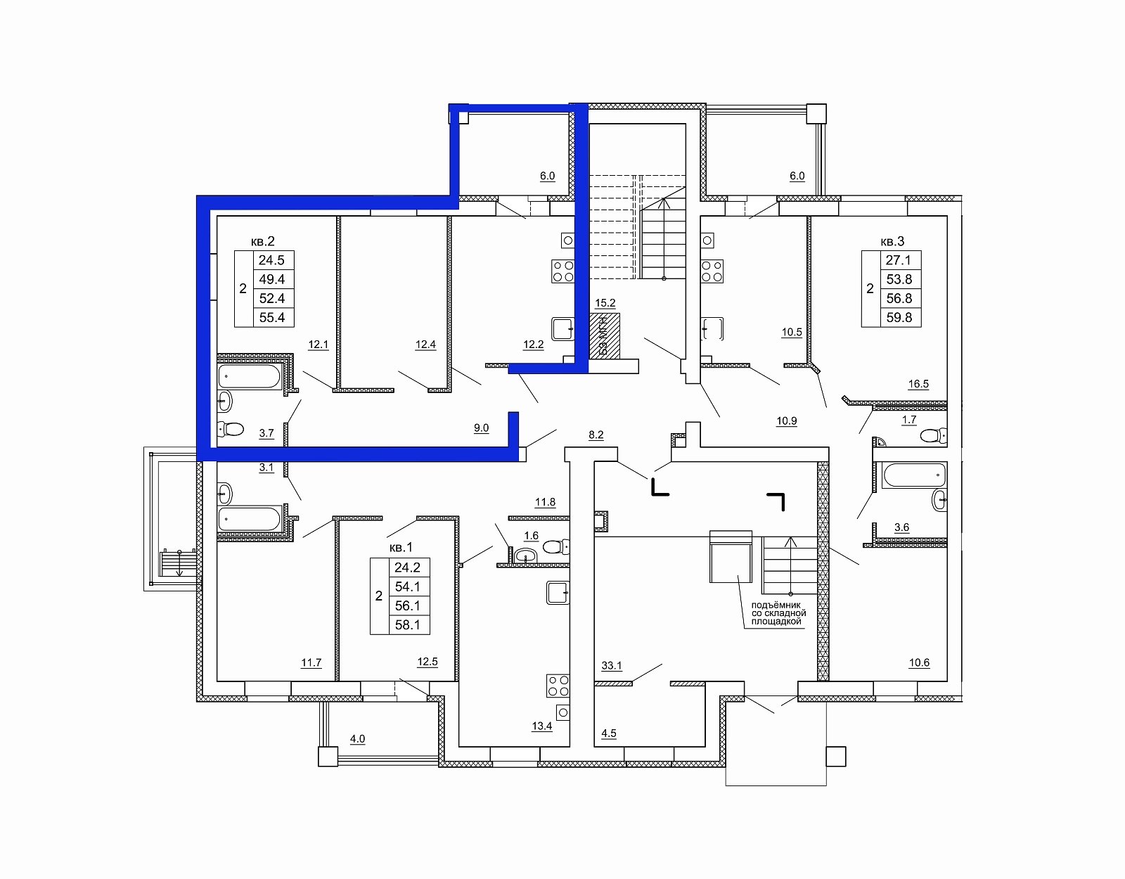2-комн. квартира № 01 пл. 58,1 м²