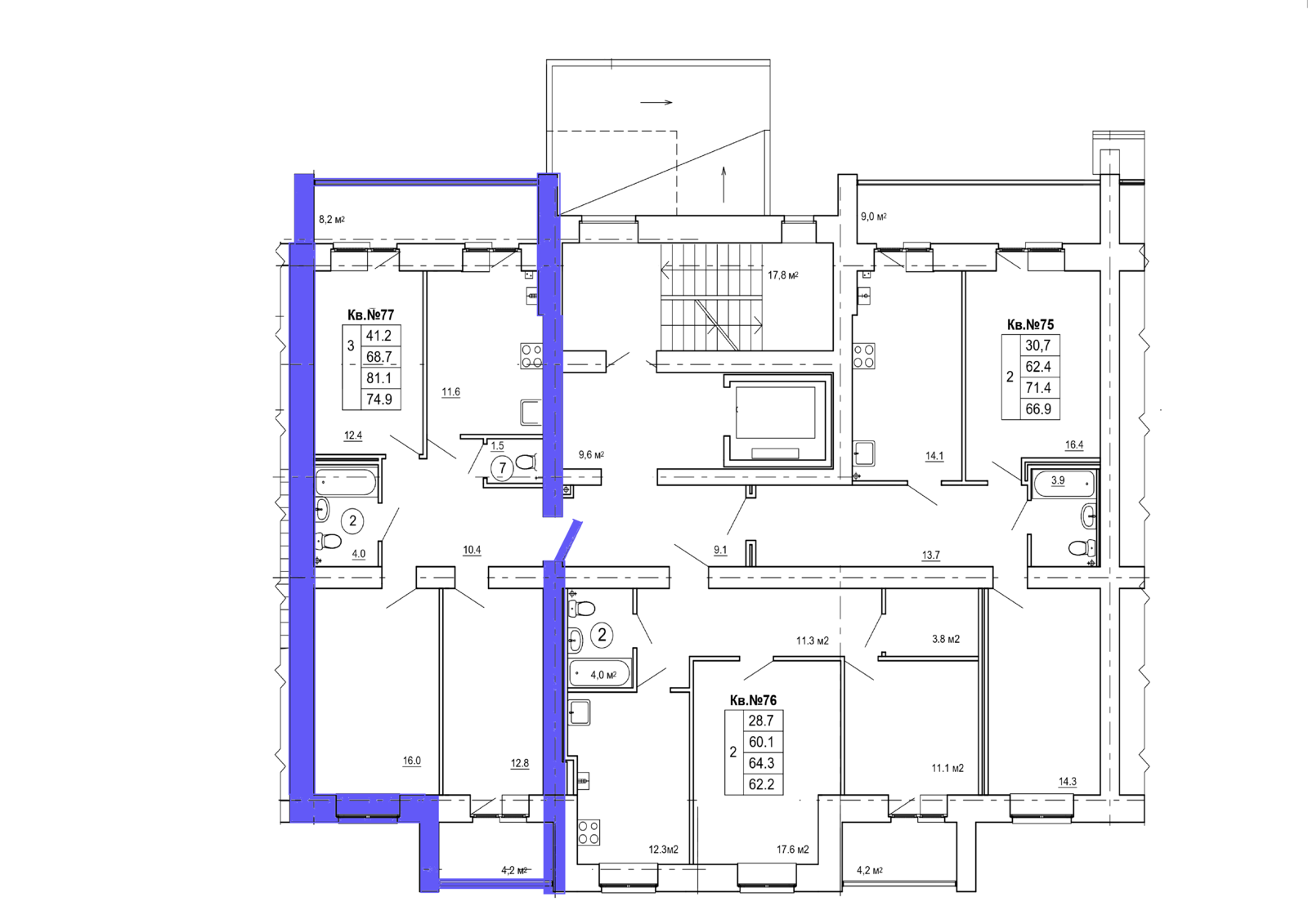 Продается 3-комн. квартира № 77 пл. 81,1 м²