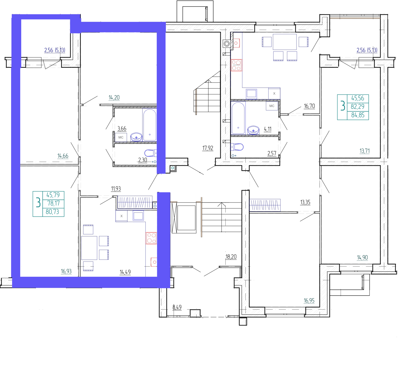 Продается 3-комн. квартира № 10 пл. 80,73 м²