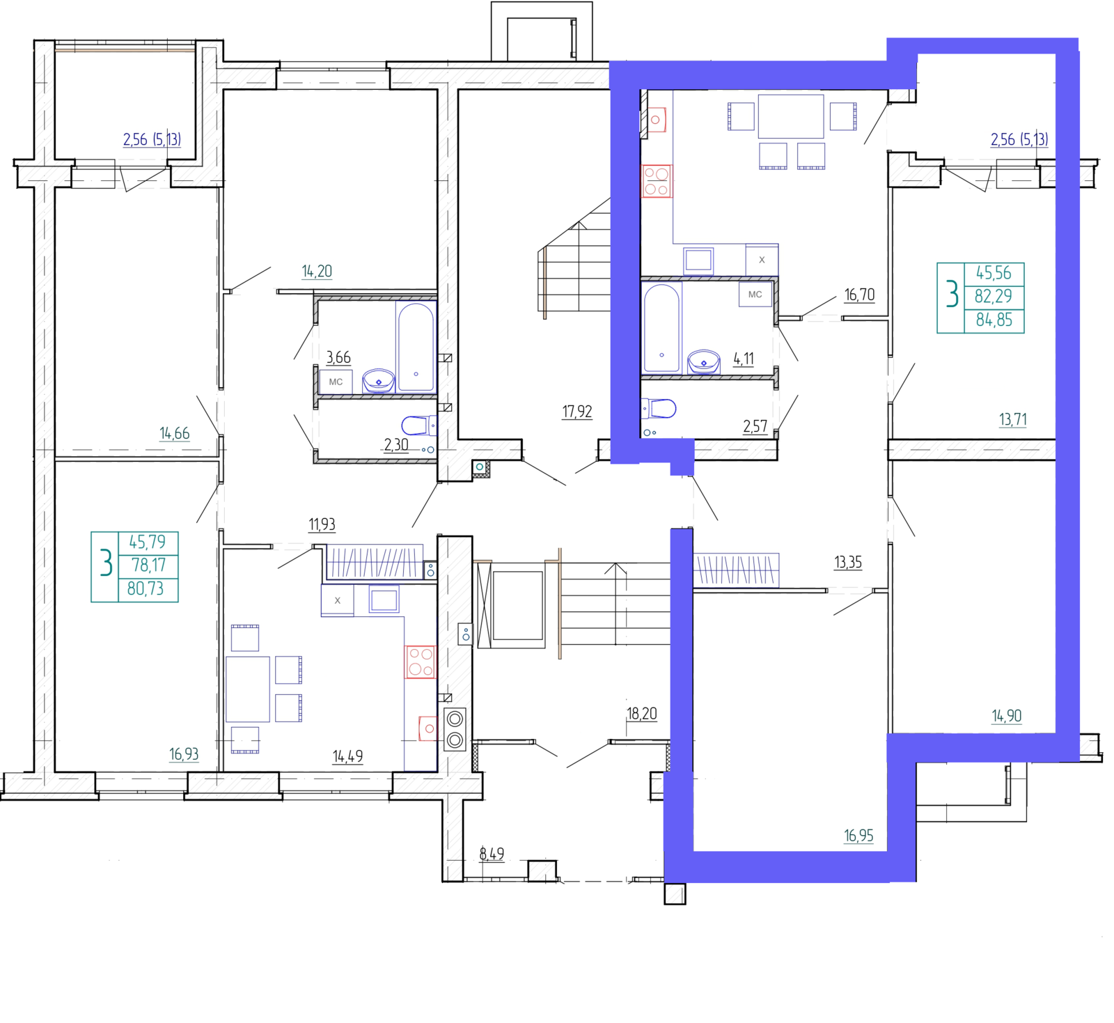 Продается 3-комн. квартира № 11 пл. 84,85 м²