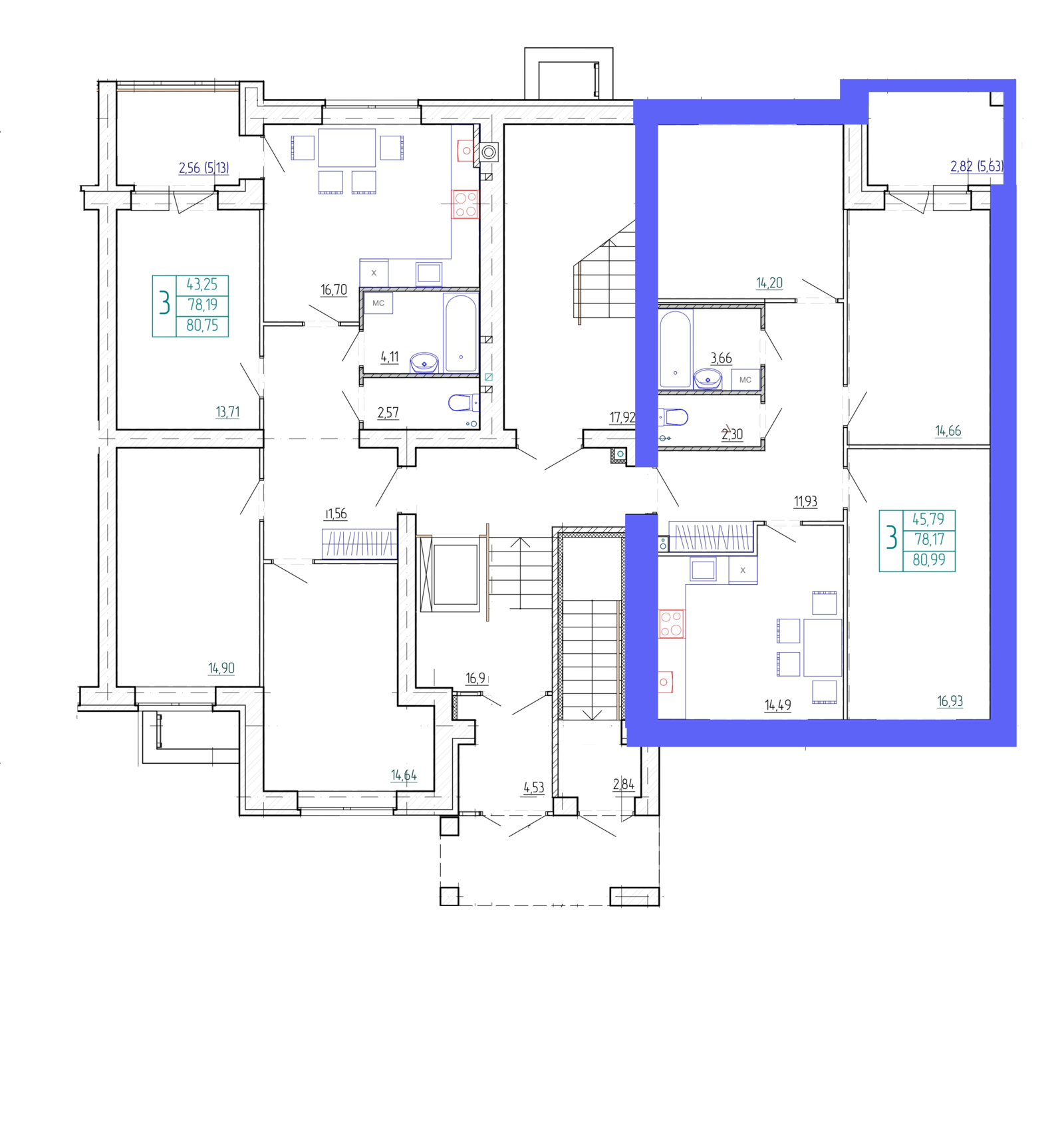 Продается 3-комн. квартира № 19 пл. 80,99 м²