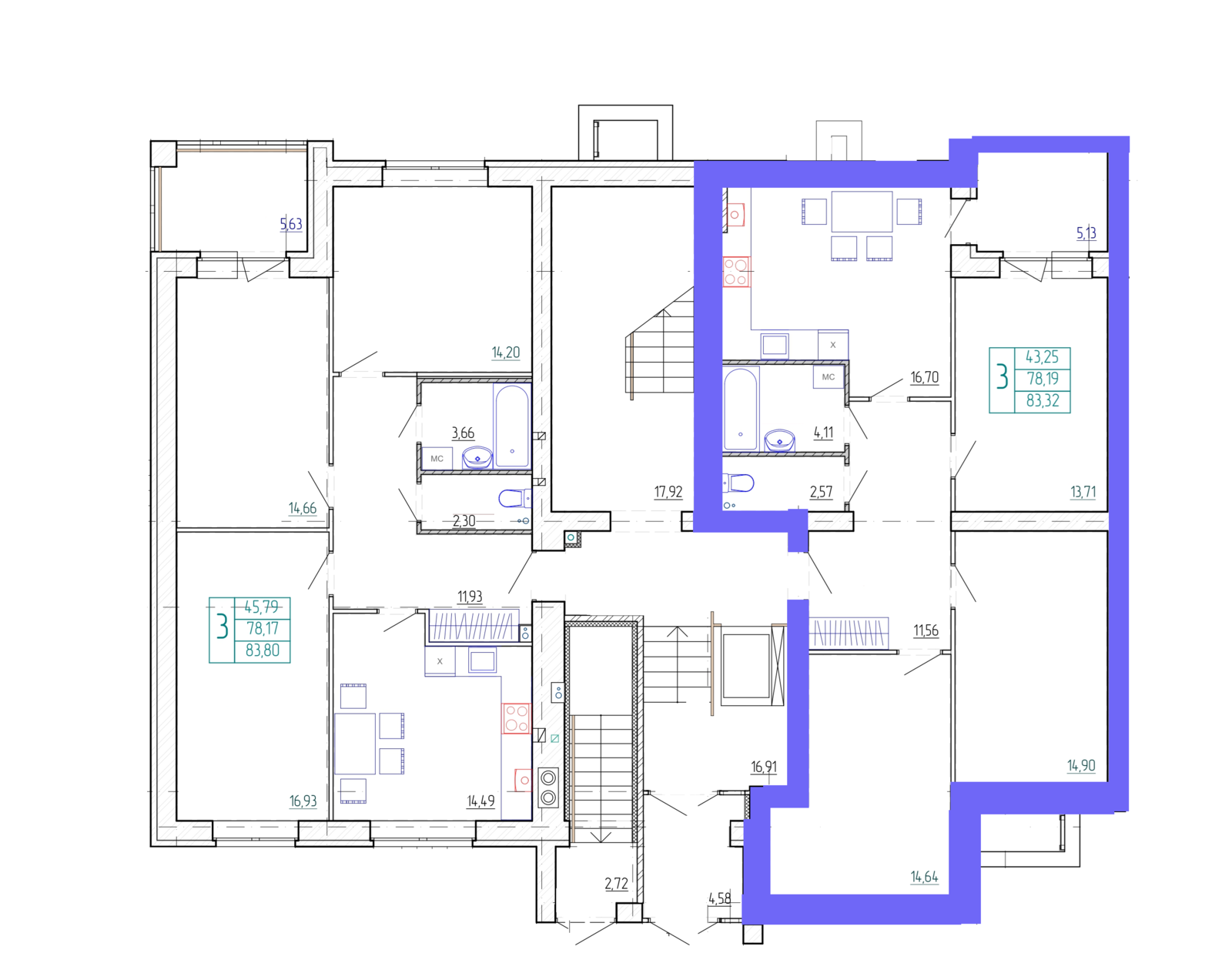 Продается 3-комн. квартира № 2 пл. 83,32 м²