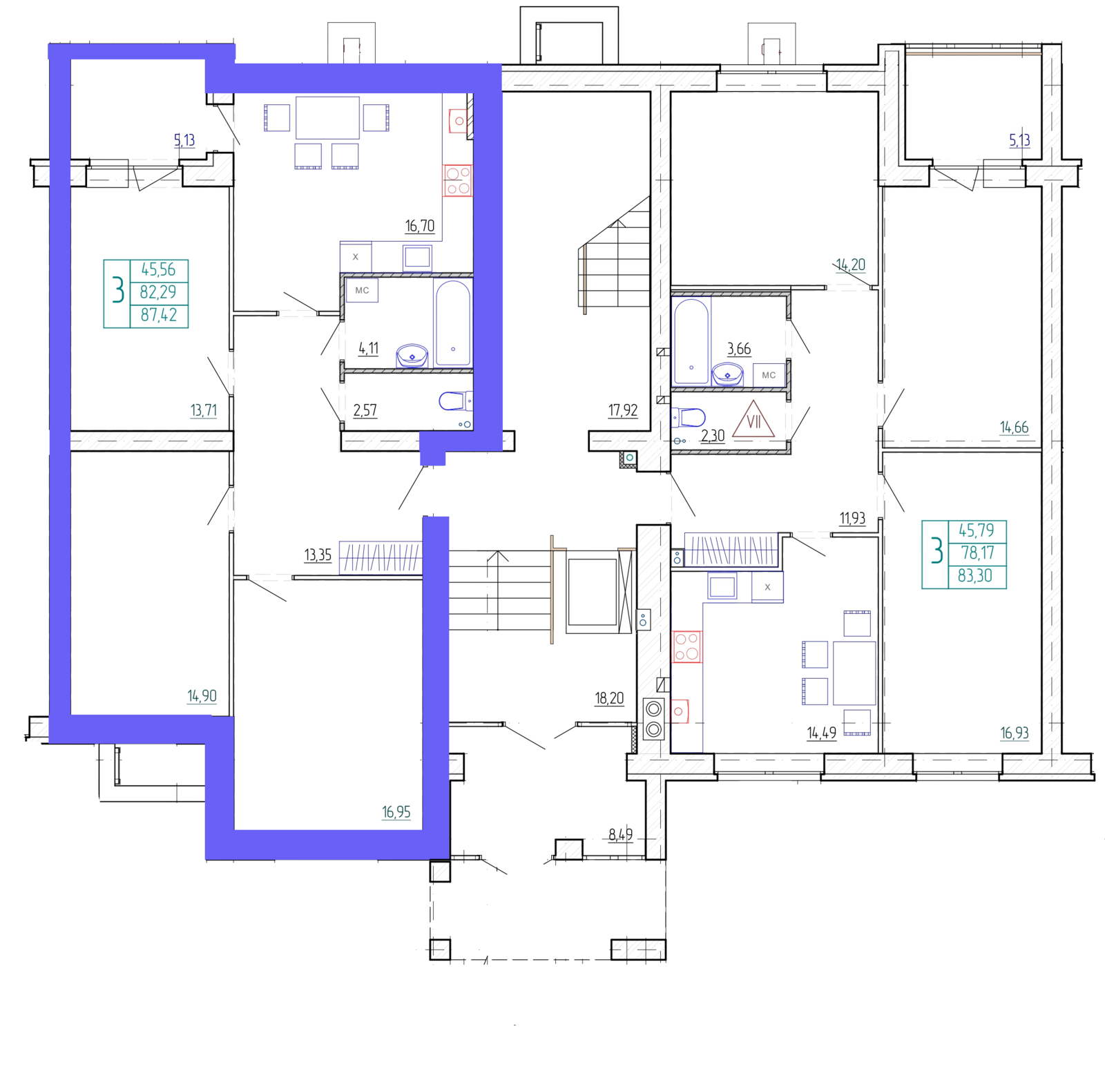 Продается 3-комн. квартира № 9 пл. 87,42 м²