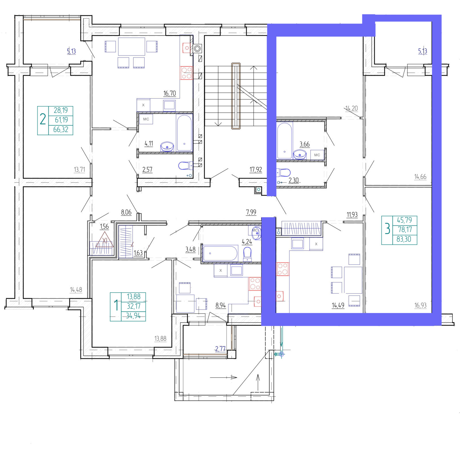 Продается 3-комн. квартира № 11 пл. 83,3 м²
