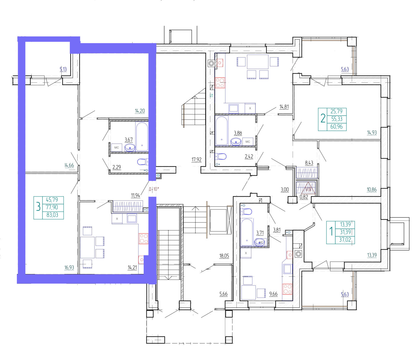 Продается 3-комн. квартира № 17 пл. 83,03 м²