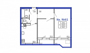 2-комн. квартира № 61 пл. 55,7 м²